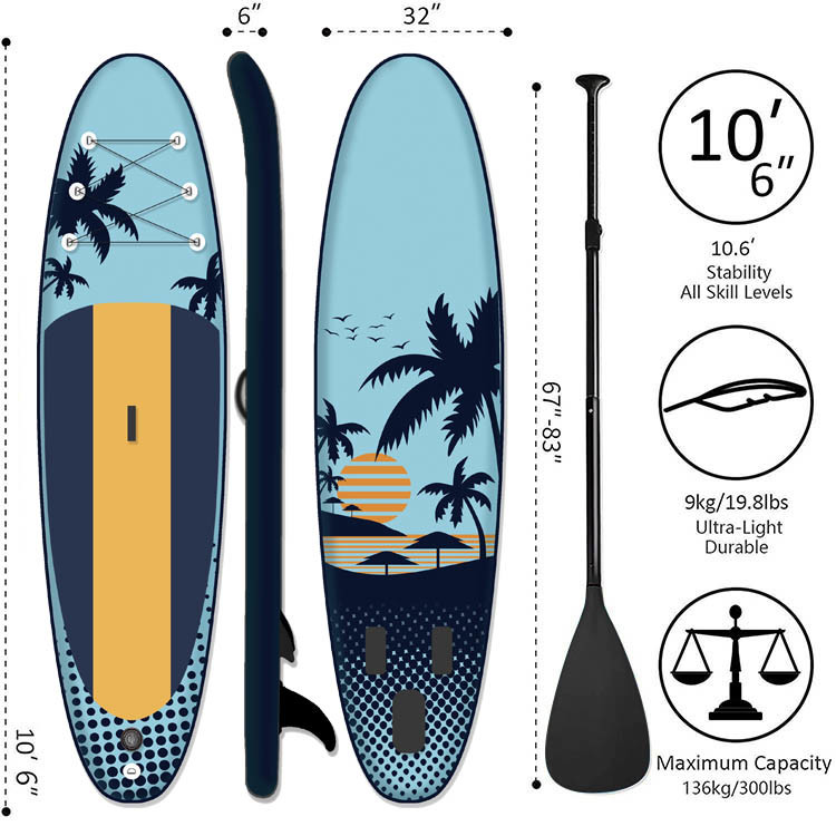 - [طرق متعددة للاستمتاع بوقت الأنشطة المائية]:يمكن استخدام لوح مجداف الوقوف القابل للنفخ في مياه مختلفة بما في ذلك البحر أو البحيرات أو الأنهار أو المحيطات الصغيرة المتموجة.تعد ألواح التجديف رائعة للتجول وصيد الأسماك وركوب الأمواج والتجديف ومشاهدة المعالم السياحية في الماء وهي أيضًا مناسبة جدًا لممارسة اليوجا ، إنها اتجاه جديد ومثالي لأولئك الذين يرغبون في الحصول على لياقتهم ولكنهم يشعرون بالملل من إعداد الصالة الرياضية المعتاد.